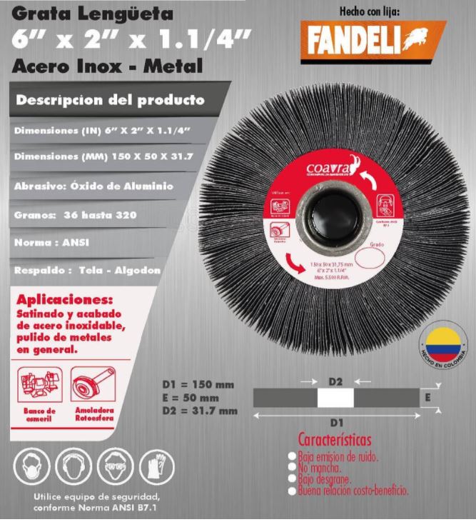 Descripción: Usado para el satinado y acabado de Acero inoxidable. Pulido de Metales en general