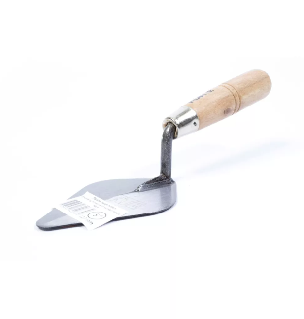 Cuerpo en Acero al Carbono, templado. Mayor durabilidad y resistencia. Mango soldado. Soldadura verificada con rayos X. Útil para trabajos de albañilería principalmente, para mezclar, recoger, transportar y extender masillas, revoques y pinturas. Mango Madera.