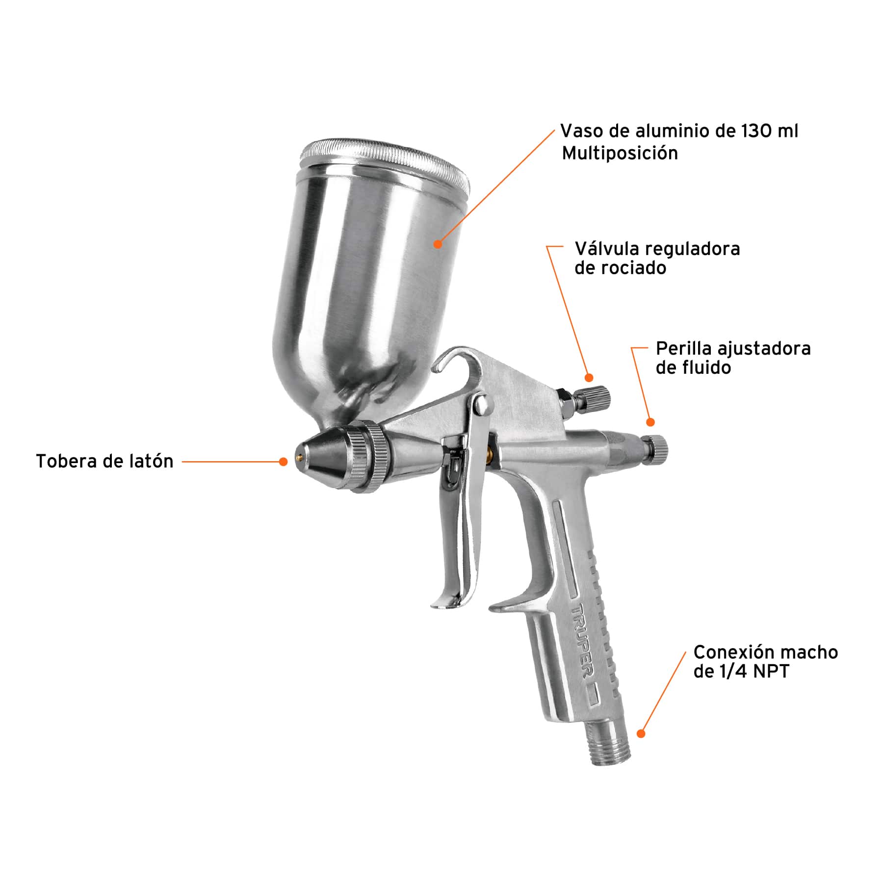 Descripción: Pistola compacta p/retoque LVMP vaso alum, 0.5 mm, Truper
