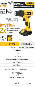 TALADRO PRETUL INALAM 3/8 12V 29975